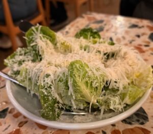 The menu is rooted in quality, and it shows in every dish. The Caesar salad is a perfect example of simplicity done right: crisp little gem lettuce tossed with a rich, balanced dressing, finished with crunchy breadcrumbs and generous shavings of Parmigiano Reggiano. It’s fresh, flavorful, and a great way to start the meal.