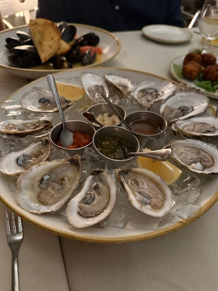 The atmosphere was very cozy and inviting, setting a nice tone for the evening. For appetizers, we ordered oysters, conch fritters, chicken potstickers, and mussels—a delicious variety to start. The main dishes included buttermilk fried chicken, jumbo stuffed shrimp, sausage and seafood risotto in red sauce, and macaroni and cheese. While the options for main courses were somewhat limited, the flavors were satisfying. Dessert was banana cheesecake, which rounded out the meal nicely.