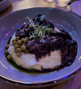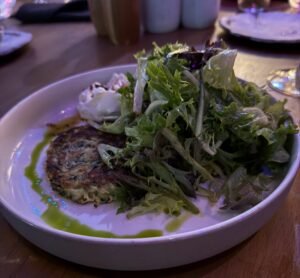 The food overall was very good, with several dishes standing out. The Zucchini Pancakes with Burrata, six-minute egg, spicy crunch sauce, greens, and miso hollandaise were excellent and definitely worth ordering. The Tuna Tataki with truffle ponzu and salsa was terrific—fresh, balanced, and beautifully flavored. The Beef Cheeks with mashed potatoes and sour curry were rich and deeply flavorful, a comforting and satisfying dish. The Lamb Chops with harissa, lemon, and crunchy cucumbers were also good, though unfortunately they lost some of their appeal due to a service misstep.