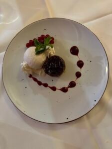 Made with Belgian Callebaut chocolate and served with vanilla ice cream
