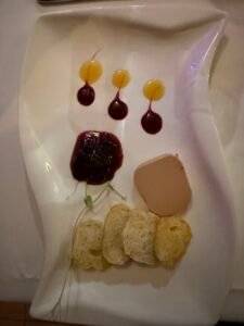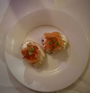 Before the meal began, the chef sent out a complimentary bite: lox on crostini, a thoughtful and delicious start. With a party of eight, we were able to explore a broad range of the menu—an authentic French lineup accented with Caribbean flair.