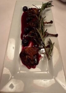 Served with fresh blueberries, grilled lemon, torched rosemary, and a blueberry–Merlot reduction—beautifully balanced and full of flavor.