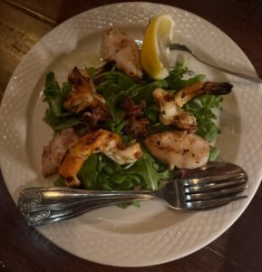 We began with drinks that were well-prepared and flavorful, setting a pleasant tone for the meal. For appetizers, we enjoyed the Clams Casino—baked clams with pancetta—rich and perfectly seasoned. The Calamari & Gamberi, featuring grilled marinated shrimp and calamari over baby arugula, offered a fresh and lightly smoky flavor combination. The Escarole & Beans, with sautéed escarole and creamy cannellini beans, was a comforting and traditional touch.