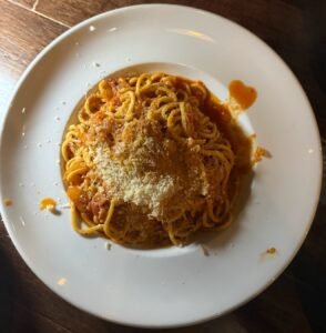 For our entrées, the Veal Chop Famosa stood out as a house favorite—tender, breaded, and pounded veal topped with a vibrant tomato sauce and melted mozzarella cheese, beautifully executed. The Spaghetti Amatriciana, made with fresh spaghetti, caramelized onions, and pancetta in a light tomato sauce, was simple and full of flavor, perfectly showcasing the balance and depth of classic Italian cooking.