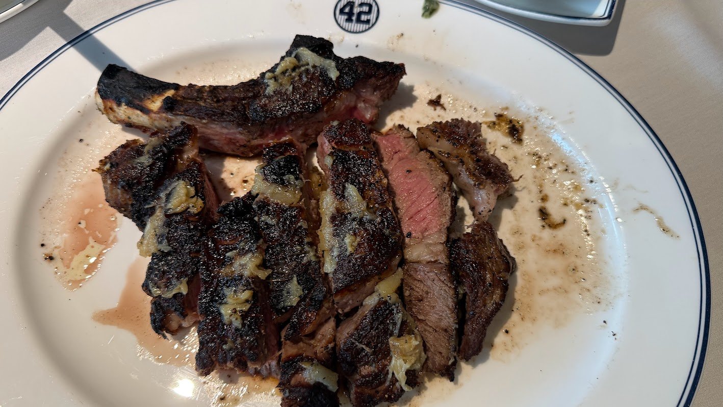 We were greeted by a friendly hostess and seated right away, which set a positive tone for the evening. The service throughout was professional and welcoming. The decor is attractive and fitting for the location, with signatures of well-known players and managers adorning the walls — a nice touch for any Yankees fan.